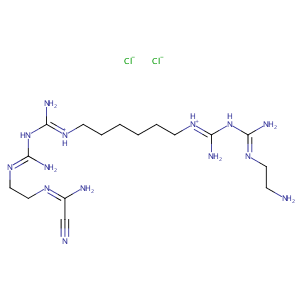 C(CCC[NH+]=C(N)NC(=NCCN=C(C#N)N)N)CC[NH+]=C(N)NC(=NCCN)<br />N.[Cl-].[Cl-]