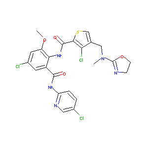 CN(CC1=CSC(=C1Cl)C(=O)NC2=C(C=C(C=C2C(=O)NC3=NC=C(C=C3)<br />Cl)Cl)OC)C4=NCCO4
