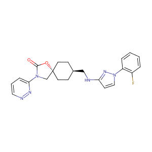 c1cccc(c1F)n1ccc(NC[C@@H]2CC[C@@]3(OC(=O)N(c4cccnn4)C3)<br />CC2)n1