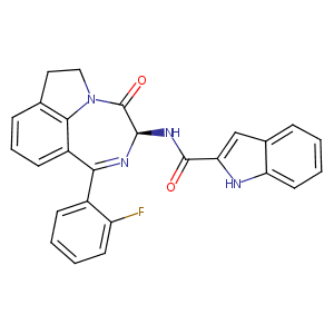 InChI=1S/C26H19FN4O2/c27-19-10-3-2-8-17(19)22-18-9-5-7-15-12-13-31(23(15)18)26(33)24(29-22)30-25(32)21-14-16-6-1-4-11-20(16)28-21/h1-11,14,24,28H,12-13H2,(H,30,32)/t24-/m1/s1
