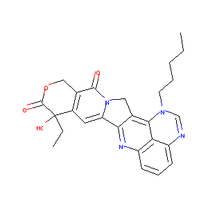 CCCCCN1C=NC2=CC=CC3=C2C1=C4CN5C(=CC6=C(C5=O)COC(=O)C6(C<br />C)O)C4=N3