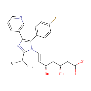 InChI=1S/C24H26FN3O4/c1-15(2)24-27-22(17-4-3-10-26-14-17)23(16-5-7-18(25)8-6-16)28(24)11-9-19(29)12-20(30)13-21(31)32/h3-11,14-15,19-20,29-30H,12-13H2,1-2H3,(H,31,32)/p-1/b11-9+/t19-,20-/m1/s1