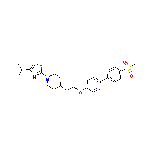 CC(C)C1=NOC(=N1)N2CCC(CC2)CCOC3=CN=C(C=C3)C4=CC=C(C=C4)<br />S(=O)(=O)C