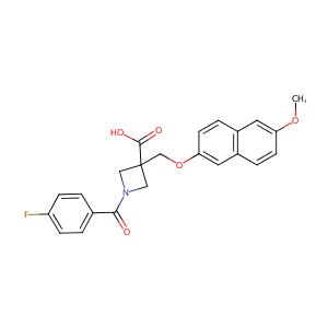 InChI=1S/C23H20FNO5/c1-29-19-8-4-17-11-20(9-5-16(17)10-19)30-14-23(22(27)28)12-25(13-23)21(26)15-2-6-18(24)7-3-15/h2-11H,12-14H2,1H3,(H,27,28)