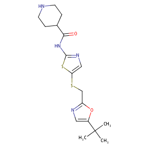 InChI=1S/C17H24N4O2S2/c1-17(2,3)12-8-19-13(23-12)10-24-14-9-20-16(25-14)21-15(22)11-4-6-18-7-5-11/h8-9,11,18H,4-7,10H2,1-3H3,(H,20,21,22)