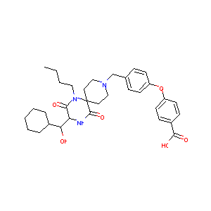 CCCCN1C(=O)C(NC(=O)C12CCN(CC2)CC3=CC=C(C=C3)OC4=CC=C(C=<br />C4)C(=O)O)C(C5CCCCC5)O