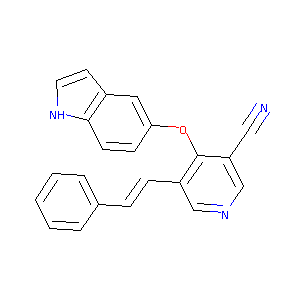 C1=CC=C(C=C1)C=CC2=C(C(=CN=C2)C#N)OC3=CC4=C(C=C3)NC=C4