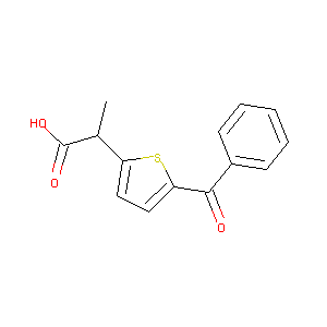 Surgam; Tiaprofensaeure; Acide tiaprofenique; Acido tiaprofenico; Acidum tiaprofenicum; Surgam SR; FC 3001; RU 15060; Acide tiaprofenique [INN-French]; Acido tiaprofenico [INN-Spanish]; Acidum tiaprofenicum [INN-Latin]; Apo-Tiaprofenic Tablets; Dom-tiaprofenic; Surgam (TN); Surgamyl (TN); Tiaprofen (TN); Tiaprofenic acid (JAN/INN); Tiaprofenic-200-Tab; Tiaprofenic-300-Tab; Tiaprofenic acid [INN:BAN:DCF:JAN]; Alpha-methyl-5-benzoyl-2-thienylacetic acid; 2-(5-Benzyl-2-thienyl)propionsaeure; 2-(5-benzoylthiophen-2-yl)propanoic acid; 2-[5-(phenylcarbonyl)-2-thienyl]propanoic acid; 5-Benzoyl-alpha-methyl-2-thiopheneacetic acid; 5-benzoyl-alpha-methylthiophene-2-acetic acid