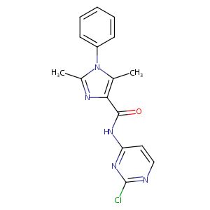 InChI=1S/C16H14ClN5O/c1-10-14(15(23)20-13-8-9-18-16(17)21-13)19-11(2)22(10)12-6-4-3-5-7-12/h3-9H,1-2H3,(H,18,20,21,23)
