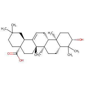 InChI=1S/C30H48O3/c1-25(2)14-16-30(24(32)33)17-15-28(6)19(20(30)18-25)8-9-22-27(5)12-11-23(31)26(3,4)21(27)10-13-29(22,28)7/h8,20-23,31H,9-18H2,1-7H3,(H,32,33)/t20-,21-,22+,23-,27-,28+,29+,30-/m0/s1