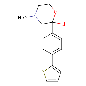 InChI=1S/C15H17NO2S/c1-16-8-9-18-15(17,11-16)13-6-4-12(5-7-13)14-3-2-10-19-14/h2-7,10,17H,8-9,11H2,1H3