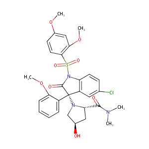 InChI=1S/C30H32ClN3O8S/c1-32(2)28(36)24-15-19(35)17-33(24)30(21-8-6-7-9-25(21)41-4)22-14-18(31)10-12-23(22)34(29(30)37)43(38,39)27-13-11-20(40-3)16-26(27)42-5/h6-14,16,19,24,35H,15,17H2,1-5H3/t19-,24+,30+/m1/s1