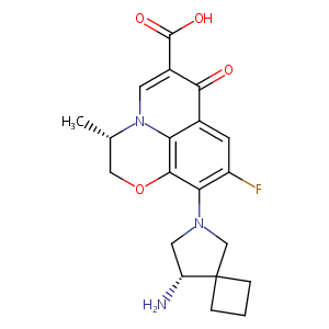 CC1COC2=C3N1C=C(C(=O)C3=CC(=C2N4CC(C5(C4)CCC5)N)F)C(=O)<br />O