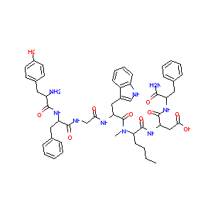 CCCCC(C(=O)NC(CC(=O)O)C(=O)NC(CC1=CC=CC=C1)C(=O)N)N(C)C<br />(=O)C(CC2=CNC3=CC=CC=C32)NC(=O)CNC(=O)C(CC4=CC=CC=C4)NC<br />(=O)C(CC5=CC=C(C=C5)O)N