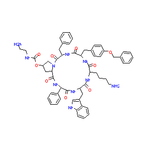 C1C(CN2C1C(=O)NC(C(=O)NC(C(=O)NC(C(=O)NC(C(=O)NC(C2=O)C<br />C3=CC=CC=C3)CC4=CC=C(C=C4)OCC5=CC=CC=C5)CCCCN)CC6=CNC7=<br />CC=CC=C76)C8=CC=CC=C8)OC(=O)NCCN.C(C(C(=O)O)N)C(=O)O.C(<br />C(C(=O)O)N)C(=O)O