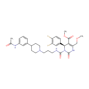 InChI=1S/C31H37F2N5O6/c1-19(39)35-23-7-4-6-21(16-23)20-10-14-37(15-11-20)13-5-12-34-30(41)38-28(22-8-9-24(32)25(33)17-22)27(29(40)44-3)26(18-43-2)36-31(38)42/h4,6-9,16-17,20,28H,5,10-15,18H2,1-3H3,(H,34,41)(H,35,39)(H,36,42)/t28-/m0/s1