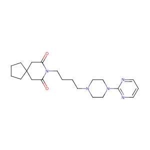 Ansial; Ansiced; Anxiron; Axoren; Bespar; Buspirona; Buspironum; Buspisal; Ansial (TN); Ansiced (TN); Anxiron (TN); Axoren (TN); Bespar (TN); BuSpar (TN); Buspimen (TN); Buspinol (TN); Buspiron (TN); Buspirona [INN-Spanish]; Buspirone (INN); Buspirone [INN:BAN]; Buspirone-MDTS; Buspironum [INN-Latin]; Buspisal (TN); Gen-Buspirone; Narol (TN); Sorbon (TN); Spamilan (TN); Spitomin (TN); Gen-Buspirone (TN); MJ-9022-1; N-(4-(4-(2-pyrimidinyl)-1-piperazinyl)butyl)-1-cyclopentanediacetamide; 8-(4-(4-(2-Pyrimidinyl)-1-piperizinyl)butyl)-8-azaspiro(4,5)decane-7,9-dione; 8-[4-(4-Pyrimidin-2-yl-piperazin-1-yl)-butyl]-8-aza-spiro[4.5]decane-7,9-dione; 8-[4-(4-pyrimidin-2-ylpiperazin-1-yl)butyl]-8-azaspiro[4.5]decane-7,9-dione; 8-{4-[4-(pyrimidin-2-yl)piperazin-1-yl]butyl}-8-azaspiro[4.5]decane-7,9-dione