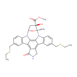 InChI=1S/C33H33N3O5S2/c1-5-42-15-17-7-9-22-19(11-17)26-27-21(14-34-30(27)37)25-20-12-18(16-43-6-2)8-10-23(20)36-29(25)28(26)35(22)24-13-33(39,31(38)40-4)32(36,3)41-24/h7-12,24,39H,5-6,13-16H2,1-4H3,(H,34,37)/t24-,32+,33+/m1/s1
