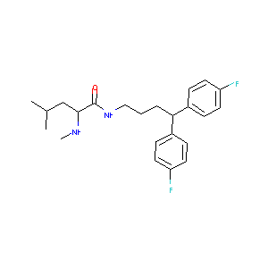 CC(C)CC(C(=O)NCCCC(C1=CC=C(C=C1)F)C2=CC=C(C=C2)F)NC.Cl