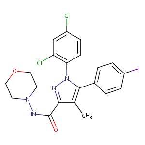 InChI=1S/C21H19Cl2IN4O2/c1-13-19(21(29)26-27-8-10-30-11-9-27)25-28(18-7-4-15(22)12-17(18)23)20(13)14-2-5-16(24)6-3-14/h2-7,12H,8-11H2,1H3,(H,26,29)