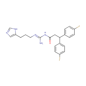 InChI=1S/C22H23F2N5O/c23-17-7-3-15(4-8-17)20(16-5-9-18(24)10-6-16)12-21(30)29-22(25)27-11-1-2-19-13-26-14-28-19/h3-10,13-14,20H,1-2,11-12H2,(H,26,28)(H3,25,27,29,30)
