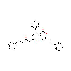 C1C(OC2=C(C1C3=CC=CC=C3)C(=O)OC(=C2)C=CC4=CC=CC=C4)CC(=<br />O)CCC5=CC=CC=C5