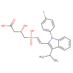 InChI=1S/C23H25FNO5P/c1-15(2)23-19-5-3-4-6-20(19)25(17-9-7-16(24)8-10-17)21(23)11-12-31(29,30)14-18(26)13-22(27)28/h3-12,15,18,26H,13-14H2,1-2H3,(H,27,28)(H,29,30)/b12-11+/t18-/m0/s1