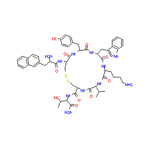 CC(C)C1C(=O)NC(CSSCC(C(=O)NC(C(=O)NC(C(=O)NC(C(=O)N1)CC<br />CCN)CC2=CNC3=CC=CC=C32)CC4=CC=C(C=C4)O)NC(=O)C(CC5=CC6=<br />CC=CC=C6C=C5)N)C(=O)NC(C(C)O)C(=O)N