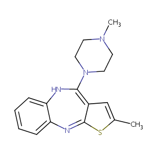 Lanzac; Midax; Olansek; Olanzapina; Olanzapinum; Symbyax; Zalasta; Zydis; Zyprexa; Eli Lilly brand of olanzapine; Lilly brand of olanzapine; Zyprexa Intramuscular; Zyprexa Velotab; Zyprexa Zydis; LY 170053; ALKS-7921; KS-1090; LY-170052; LY-170053; Olanzapine (OLA); Olanzapine [USAN:INN]; Olzapin (TN); Rexapin (TN); Zalasta (TN); Zolafren (TN); Zydis (TN); Zyprexa (TN); Olanzapine (JAN/USAN/INN); 2-Methyl-4-(4-methyl-1-piperazinyl)-10H-thieno(2,3-b)(1,5)benzodiazepine; 2-Methyl-4-(4-methyl-1-piperazinyl)-10H-thieno[2,3-b][1,5]benzodiazepine; 2-methyl-4-(4-methyl-1-piperazinyl)-10 H-thieno[2,3-b ] [1,5]benzodiazepine; 2-methyl-4-(4-methylpiperazin-1-yl)-10H-thieno[2,3-b][1,5]benzodiazepine; 2-methyl-4-(4-methylpiperazin-1-yl)-5H-thieno[2,3-b][1,5]benzodiazepine; 2-methyl-4-(4-methylpiperazin-1-yl)-5H-thieno[3,2-c][1,5]benzodiazepine