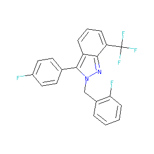 1S/C21H13F5N2/c22-15-10-8-13(9-11-15)20-16-5-3-6-17(21(24,25)26)19(16)27-28(20)12-14-4-1-2-7-18(14)23/h1-11H,12H2