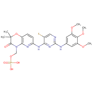InChI=1S/C23H26FN6O9P/c1-23(2)21(31)30(11-38-40(32,33)34)20-14(39-23)6-7-17(28-20)27-19-13(24)10-25-22(29-19)26-12-8-15(35-3)18(37-5)16(9-12)36-4/h6-10H,11H2,1-5H3,(H2,32,33,34)(H2,25,26,27,28,29)