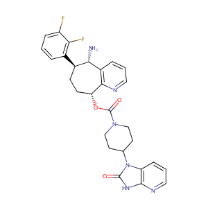 N[C@H]1[C@@H](CC[C@@H](OC(=O)N2CCC(CC2)N3C(=O)Nc4ncccc3<br />4)c5ncccc15)c6cccc(F)c6F