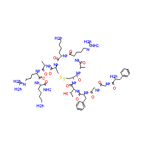 CC1C(=O)NC(C(=O)NC(C(=O)NC(CSSCC(C(=O)N1)NC(=O)C(C(C)O)<br />NC(=O)C(CC2=CC=CC=C2)NC(=O)CNC(=O)CNC(=O)C(CC3=CC=CC=C3<br />)N)C(=O)NC(C)C(=O)NC(CCCN=C(N)N)C(=O)NC(CCCCN)C(=O)N)CC<br />CCN)CCCN=C(N)N
