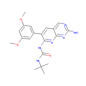 CC(C)(C)NC(=O)NC1=C(C=C2C=NC(=NC2=N1)N)C3=CC(=CC(=C3)OC<br />)OC