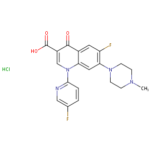 CN1CCN(CC1)C2=C(C=C3C(=C2)N(C=C(C3=O)C(=O)O)C4=NC=C(C=C<br />4)F)F.Cl