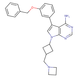 InChI=1S/C27H29N5O/c28-26-25-24(21-8-4-9-23(14-21)33-17-19-6-2-1-3-7-19)16-32(27(25)30-18-29-26)22-12-20(13-22)15-31-10-5-11-31/h1-4,6-9,14,16,18,20,22H,5,10-13,15,17H2,(H2,28,29,30)