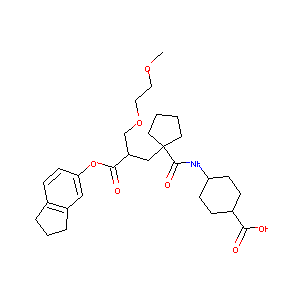 UK 79300; Candoxatril [USAN:INN:BAN]; UK-79,300; Candoxatril (JAN/USAN/INN); Cyclohexanecarboxylic acid, 4-(((1-(2-carboxy-3-(2-methoxyethoxy)propyl)cyclopentyl)carbonyl)-amino)-, (4(S)-cis); [4(S)-cis]-4-[[[1-[3-[(2,3-dihydro-1H-indeb5-yl)oxy]-2-[(2-methoxyethoxy)methyl]-3-oxopropyl]cyclopentyl]carbonyl]amino]cyclohexanecarboxylic acid; Cis-4-{[(1-{(2S)-3-(2,3-dihydro-1H-inden-5-yloxy)-2-[(2-methoxyethoxy)methyl]-3-oxopropyl}cyclopentyl)carbonyl]amino}cyclohexanecarboxylic acid; (alphaS)-1-((cis-4-Carboxycyclohexyl)carbamoyl)-alpha-((2-methoxyethoxy)methyl)cyclopentanepropionic acid; 3-(1-((4-Carboxycyclohexyl)carbamoyl)cyclopentyl)-2-(2-methoxyethoxymethyl)propanoic acid 5-indanyl ester; 4-[[1-[(2S)-3-(2,3-dihydro-1H-inden-5-yloxy)-2-(2-methoxyethoxymethyl)-3-oxopropyl]cyclopentanecarbonyl]amino]cyclohexane-1-carboxylic acid; 4-[[1-[3-(2,3-dihydro-1H-inden-5-yloxy)-2-(2-methoxyethoxymethyl)-3-oxopropyl]cyclopentanecarbonyl]amino]cyclohexane-1-carboxylic acid