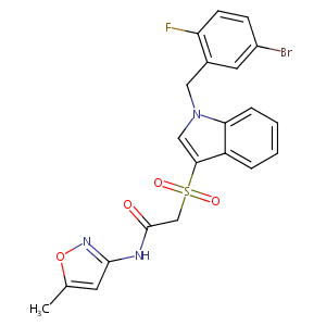 InChI=1S/C21H17BrFN3O4S/c1-13-8-20(25-30-13)24-21(27)12-31(28,29)19-11-26(18-5-3-2-4-16(18)19)10-14-9-15(22)6-7-17(14)23/h2-9,11H,10,12H2,1H3,(H,24,25,27)