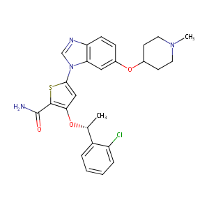 InChI=1S/C26H27ClN4O3S/c1-16(19-5-3-4-6-20(19)27)33-23-14-24(35-25(23)26(28)32)31-15-29-21-8-7-18(13-22(21)31)34-17-9-11-30(2)12-10-17/h3-8,13-17H,9-12H2,1-2H3,(H2,28,32)/t16-/m1/s1