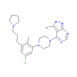 CC1=C(C=C(C=C1CCCN2CCCC2)Cl)N3CCN(CC3)C4=NC=NC5=NNC(=C5<br />4)Br