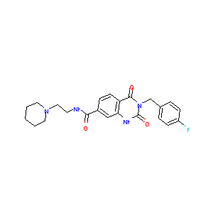 C1CCN(CC1)CCNC(=O)C2=CC3=C(C=C2)C(=O)N(C(=O)N3)CC4=CC=C<br />(C=C4)F