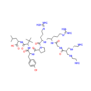 CC(C)CC(C(=O)O)NC(=O)C(C(C)(C)C)NC(=O)C(CC1=CC=C(C=C1)O<br />)NC(=O)C2CCCN2C(=O)C(CCCN=C(N)N)NCC(CCCN=C(N)N)NC(=O)CN<br />C(=O)C(CNCCN)CNCCN