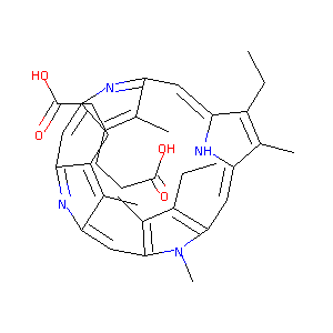 CCC1=C(C2=CC3=C(C(=C(N3C)C=C4C(=C(C(=N4)C=C5C(=C(C(=N5)<br />C=C1N2)C)CCC(=O)O)CCC(=O)O)C)C)CC)C