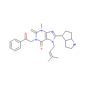 CC(=CCN1C(=NC2=C1C(=O)N(C(=C)N2C)CC(=O)C3=CC=CC=C3)C4CC<br />C5C4CCN5)C