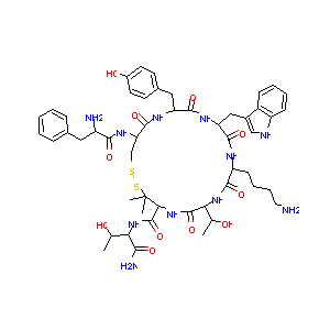 CC(C1C(=O)NC(C(SSCC(C(=O)NC(C(=O)NC(C(=O)NC(C(=O)N1)CCC<br />CN)CC2=CNC3=CC=CC=C32)CC4=CC=C(C=C4)O)NC(=O)C(CC5=CC=CC<br />=C5)N)(C)C)C(=O)NC(C(C)O)C(=O)N)O