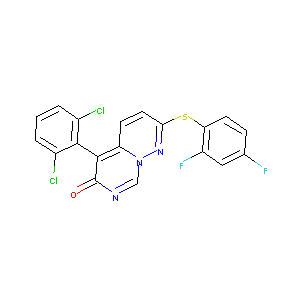 C1=CC(=C(C(=C1)Cl)C2=C3C=CC(=NN3C=NC2=O)SC4=C(C=C(C=C4)<br />F)F)Cl