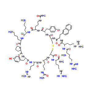 C1CC2C(=O)NC(C(=O)NC(C(=O)NC(C(=O)NC(CSSCC(C(=O)NC(C(=O<br />)NC(C(=O)NC(C(=O)NC(C(=O)N2C1)CCCCN)CCCCN)CCCNC(=O)N)CC<br />3=CC=C(C=C3)O)NC(=O)C(CC4=CC5=CC=CC=C5C=C4)NC(=O)C(CCCN<br />C(=N)N)NC(=O)C(CCCNC(=N)N)N)C(=O)NC(CCCNC(=N)N)C(=O)N)C<br />CCNC(=O)N)CCCNC(=N)N)CC6=CC=C(C=C6)O