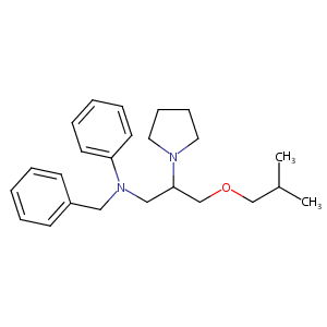 InChI=1S/C24H34N2O/c1-21(2)19-27-20-24(25-15-9-10-16-25)18-26(23-13-7-4-8-14-23)17-22-11-5-3-6-12-22/h3-8,11-14,21,24H,9-10,15-20H2,1-2H3