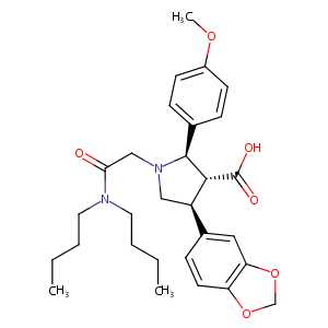 InChI=1S/C29H38N2O6/c1-4-6-14-30(15-7-5-2)26(32)18-31-17-23(21-10-13-24-25(16-21)37-19-36-24)27(29(33)34)28(31)20-8-11-22(35-3)12-9-20/h8-13,16,23,27-28H,4-7,14-15,17-19H2,1-3H3,(H,33,34)/t23-,27-,28+/m1/s1