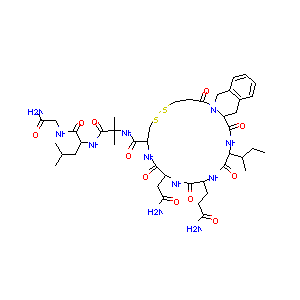 CCC(C)C1C(=O)NC(C(=O)NC(C(=O)NC(CSSCCC(=O)N2CC3=CC=CC=C<br />3CC2C(=O)N1)C(=O)NC(C)(C)C(=O)NC(CC(C)C)C(=O)NCC(=O)N)C<br />C(=O)N)CCC(=O)N